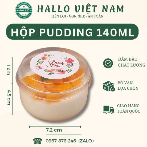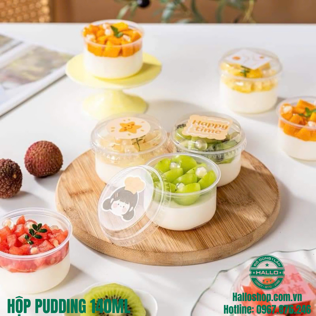 HŨ PUDDING NHỰA 140ML là sản phẩm dùng để đựng bánh panna cotta, pudding, flan, mousse lạnh và các loại bánh ngọt khác, giúp cho sản phẩm của bạn luôn được bảo quản tốt, đẹp mắt và thơm ngon.