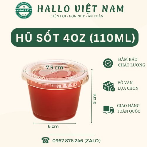 HŨ SỐT 4OZ-110ML là sản phẩm dùng để đựng các loại nước chấm, topping, đồ dùng thử v.v vô cùng tiện lợi, gọn nhẹ, phù hợp cho các tiệm đồ ăn mang về.