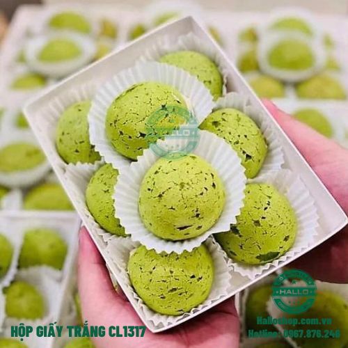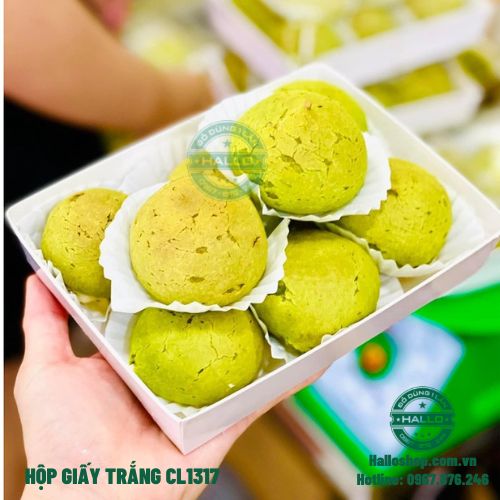- Khay giấy CL1317 màu trắng nắp trong dùng để đựng bánh Sukem