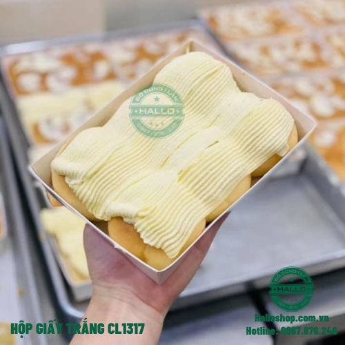 - Khay giấy CL1317 màu trắng nắp trong dùng để đựng bánh bông lan