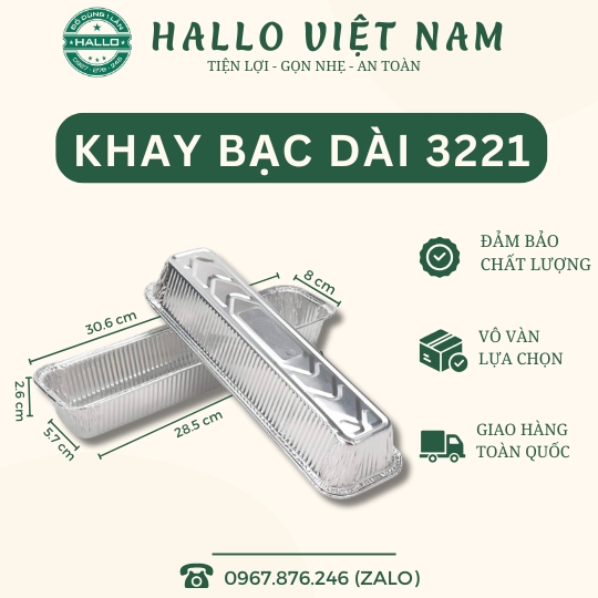 - Khay nhôm dài 3221dùng để nướng trong lò nướng hoặc nồi chiên.