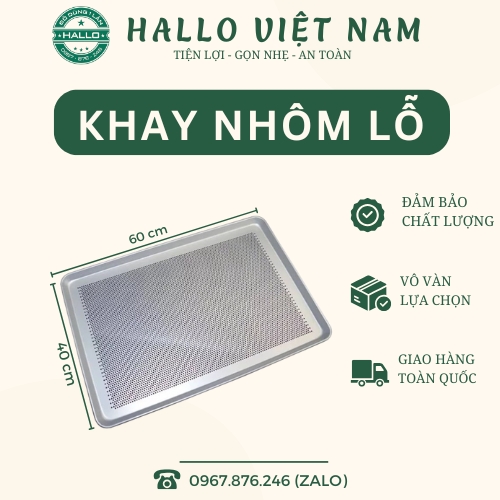 - Khay nhôm nướng bánh có kích thước cụ thể là 40*60*3cm với độ dày 0.8mm