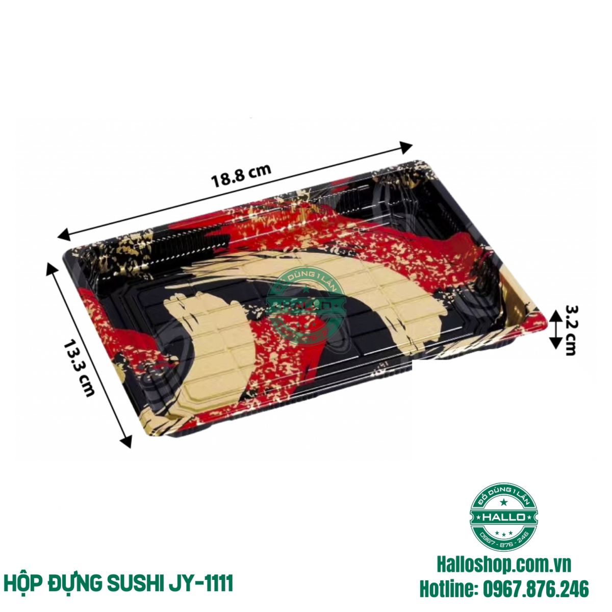 - Khay nhựa sushi hình chữ nhật có hoa văn JY-1111 dùng để đựng thực phẩm chế biến sẵn
