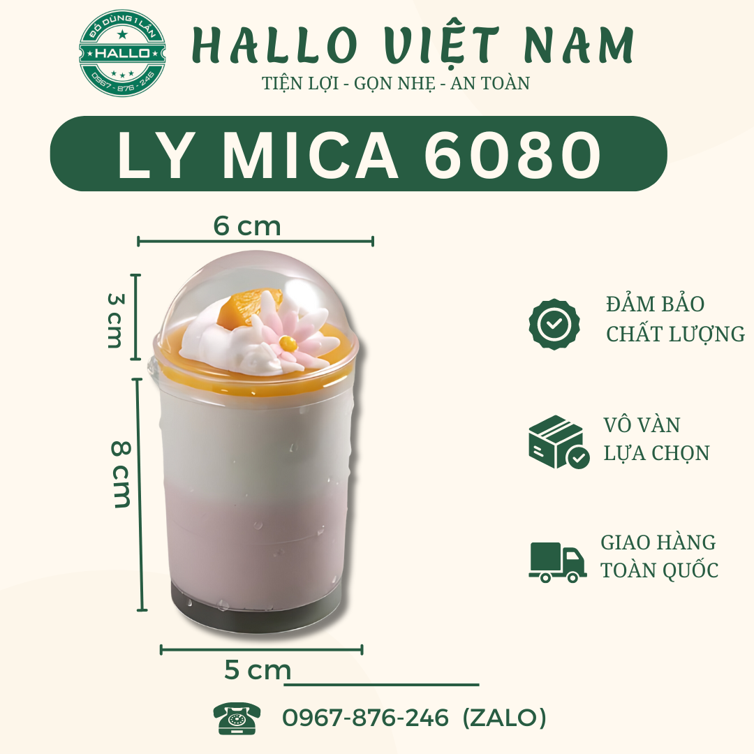 LY MICA KÈM NẮP CẦU 6080 là sản phẩm dùng để đựng bánh mousse, tiramisu, panna cotta giúp cho sản phẩm của bạn luôn được bảo quản tốt, đẹp mắt và thơm ngon.