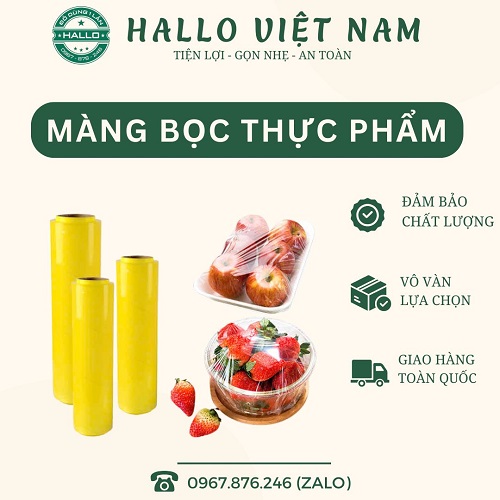 MÀNG BỌC THỰC PHẨM là sản phẩm dùng để bọc đồ ăn, thực phẩm giúp thực phẩm được bảo quản tốt, giữ được độ thơm ngon.