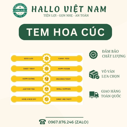Tem thường có hình tròn, kích thước phổ biến 2.5cm, được in sẵn thông điệp dễ thương như "Thank You", "Handmade with Love", "Sweet Gift",… Chất liệu decal giấy hoặc decal nhựa dẻo dính tốt, dễ bóc dán, không bong tróc.
