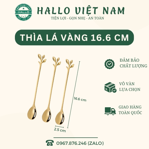 Thìa vàng hình lá là dòng thìa khuấy mini tinh tế, được thiết kế độc đáo với phần đầu thìa cách điệu theo hình chiếc lá mềm mại, tạo điểm nhấn thẩm mỹ cho mỗi ly nước. Với chiều cao khoảng 16.6cm và bản rộng 2.5cm, thìa có kích thước vừa vặn để dùng khuấy cà phê, trà, sữa, sinh tố hoặc các món đồ uống đá xay.