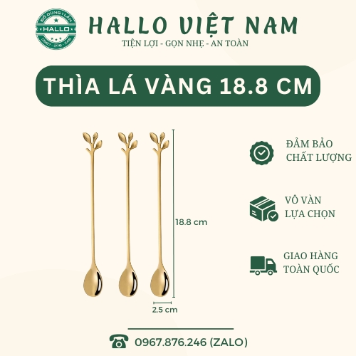 Thìa vàng hình lá là dòng thìa khuấy mini tinh tế, được thiết kế độc đáo với phần đầu thìa cách điệu theo hình chiếc lá mềm mại, tạo điểm nhấn thẩm mỹ cho mỗi ly nước. Với chiều cao khoảng 18.8cm và bản rộng 2.5cm, thìa có kích thước vừa vặn để dùng khuấy cà phê, trà, sữa, sinh tố hoặc các món đồ uống đá xay.