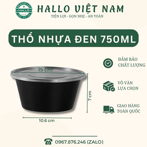 - Thố nhựa đen có nắp 750ml dùng để đựng các loại đồ ăn mang đi