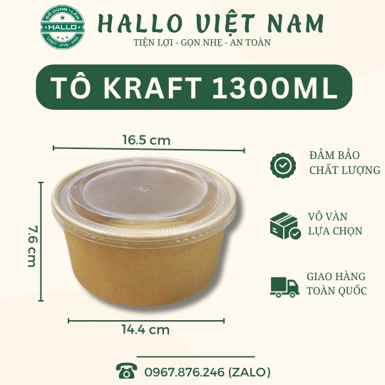Tô giấy kraft 1300ML được làm từ bột giấy đã được xử lý, là loại tô thay thế hoàn hảo cho các bao bì túi ni lông, đang rất phổ biến trong cuộc sống hiện nay.