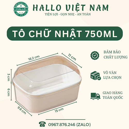 TÔ GIẤY CHỮ NHẬT 750ML TRẮNG là sản phẩm phù hợp để đựng bánh bông lan, bánh ngọt, bánh crepe, v.v giúp cho những chiếc bánh của bạn luôn đẹp mắt và thơm ngon như vừa mới ra lò.