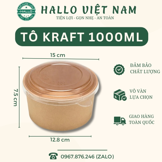 Tô giấy kraft 1000ml tiện lợi, an toàn, thân thiện môi trường