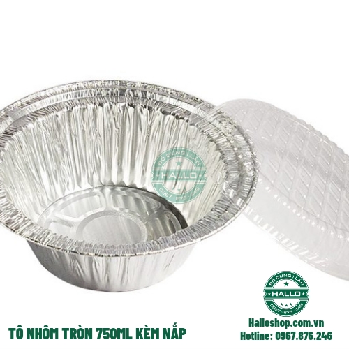 Tô nhôm tròn 750ml kèm nắp được làm từ chất liệu giấy bạc, an toàn cho người sử dụng, không gây hại tới sức khỏe.