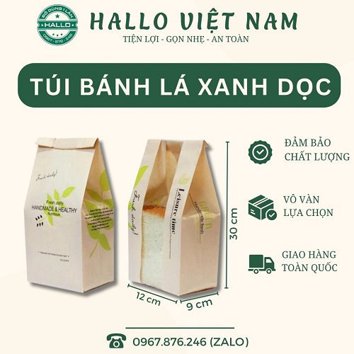 - Túi bánh mì dọc lá xanh dùng để đựng bánh mì mặn & ngọt