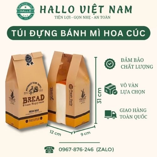 - Túi bánh mì Bread vàng dọc dùng để đựng bánh mì hoa cúc