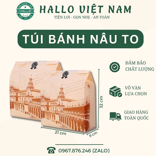 - Túi bánh mì nâu ngang dùng để đựng bánh mì mặn & ngọt