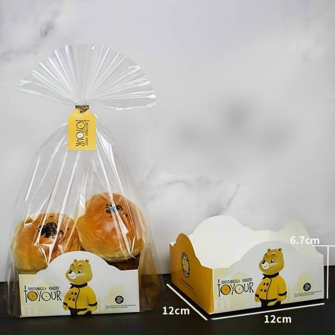 Túi bánh hình gấu thấp được làm từ chất liệu nilon trong suốt, có kèm tem và kẽm buộc, ngoài sử dụng để đóng gói bánh thì nhìn sản phẩm bánh còn rất đẹp, có tính thẩm mỹ, có thể nhìn được đồ ăn bên trong.