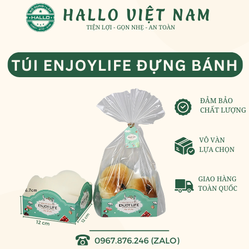 TÚI ENJOYLIFE XANH là sản phẩm dùng để đựng bánh qui, bánh cookie, bánh mì, bánh ngọt các loại, giúp cho sản phẩm của bạn được bảo quản tốt, luôn thơm ngon, đẹp mắt.