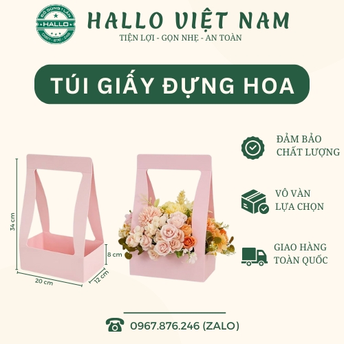 - Túi giấy hồng quai vuông dùng để cắm hoa