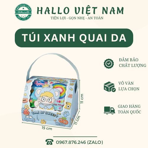 TÚI GIẤY QUAI DA [XANH] là sản phẩm dùng để đựng bánh quy, bánh trung thu, bánh kẹo các loại, bánh pía, bánh thuyền gạo lức, phù hợp cho các dịp lễ thiếu nhi 1/6, trung thu, sinh nhật của các bé.