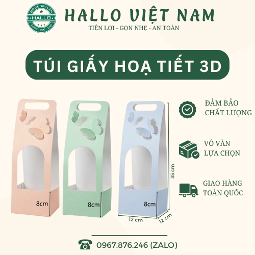 TÚI GIẤY CÁNH BƯỚM của là sản phẩm dùng để đựng bánh và hoa, cắm hoa, nước và hoa, phù hợp làm quà tặng cho người thân, người thương nhân dịp sinh nhật, ngày 8/3, dịp lễ.
