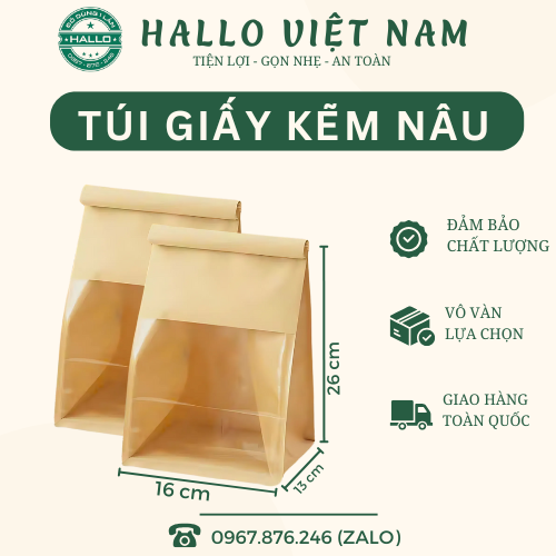 TÚI GIẤY NÂU ĐẦU KẼM SZ TRUNG là sản phẩm dùng để đựng bánh qui, bánh cookie, bánh mì, bánh ngọt các loại, giúp cho sản phẩm của bạn được bảo quản tốt, luôn thơm ngon, đẹp mắt.