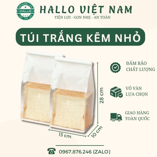 TÚI GIẤY TRẮNG ĐẦU KẼM SZ NHỎ là sản phẩm dùng để đựng bánh qui, bánh cookie, bánh mì, bánh ngọt các loại, giúp cho sản phẩm của bạn được bảo quản tốt, luôn thơm ngon, đẹp mắt.