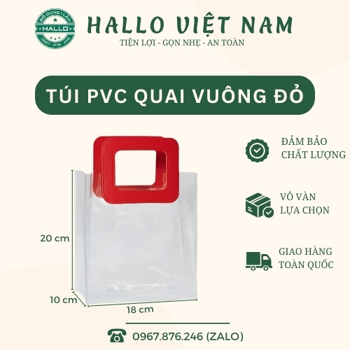 MUA TÚI PVC TRONG SUỐT QUAI XÁCH ĐỎ TẠI HALLO VIETNAM