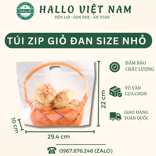TÚI ZIP GIỎ ĐAN SIZE NHỎ là sản phẩm dùng để đựng bánh qui, bánh cookie, bánh mì, bánh ngọt các loại, giúp cho sản phẩm của bạn được bảo quản tốt, luôn thơm ngon, đẹp mắt.
